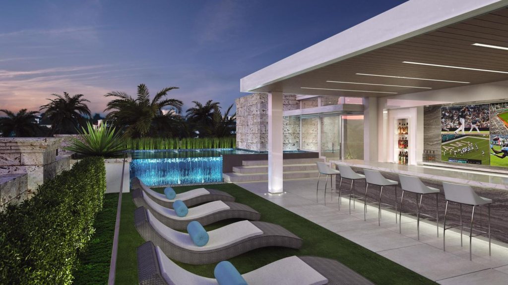 Above it all, a private rooftop retreat creates a world of its own—complete with an infinity-edge pool, outdoor bar, sun-drenched lounging areas, and even a bespoke mini-golf feature. It’s a space designed not just for relaxation, but for memorable moments under the Palm Beach sky.