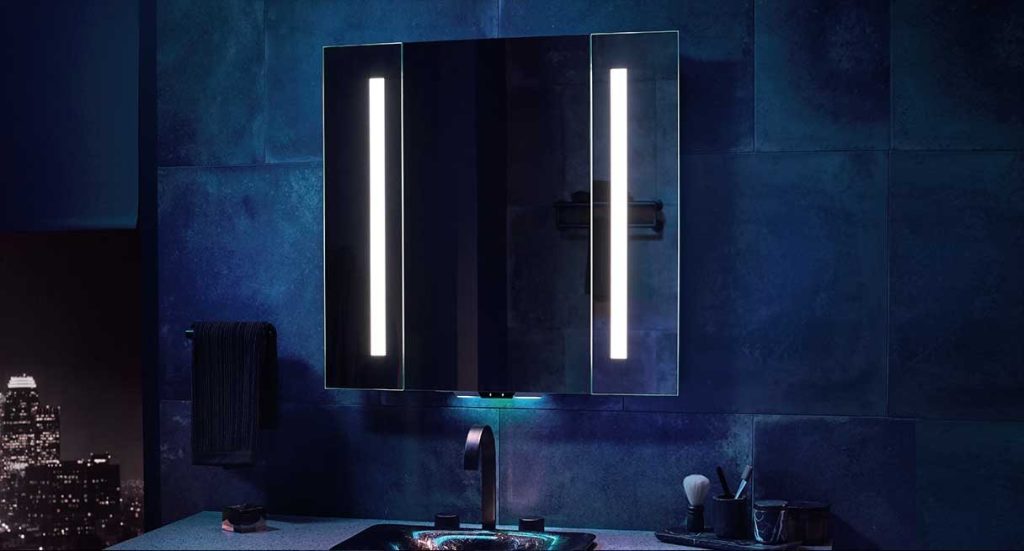Balancing functionality with understated elegance, the Kohler Verdera Smart Mirror is available in multiple sizes and features integrated voice control via Amazon Alexa.