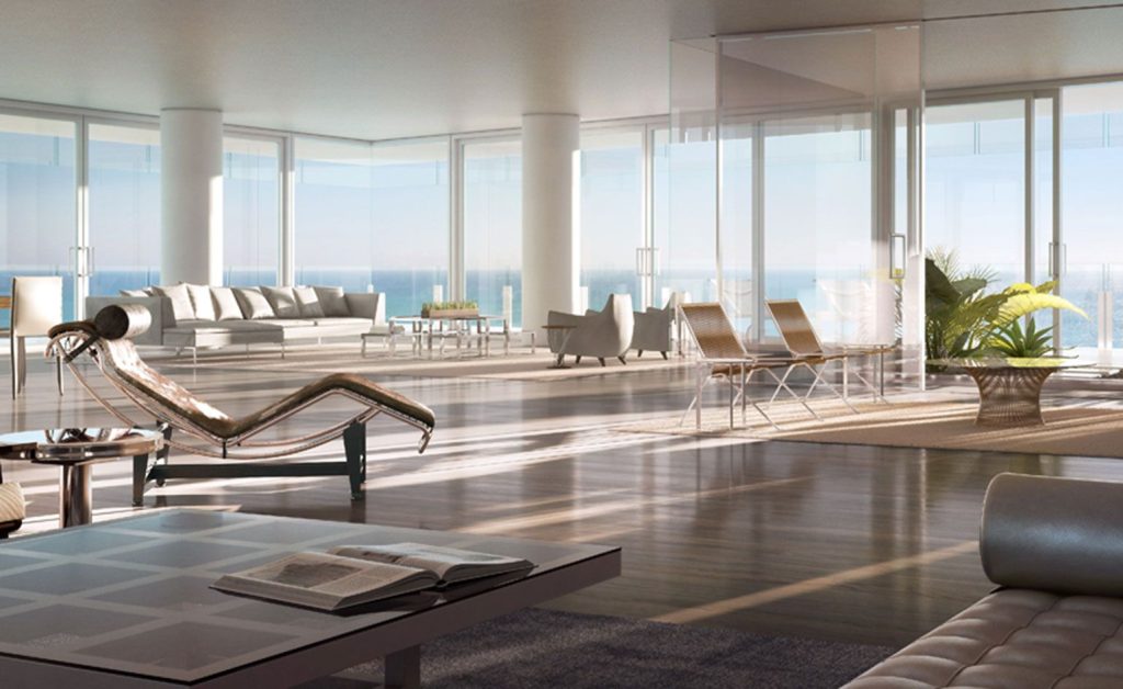 Spanning approximately 4,000 square feet, the residence unfolds through an open-plan layout designed to capture uninterrupted views of both the Atlantic Ocean and Miami’s ever-evolving skyline. Expansive glass walls dissolve the boundary between interior and exterior, leading to a private terrace that feels suspended between sea and sky.