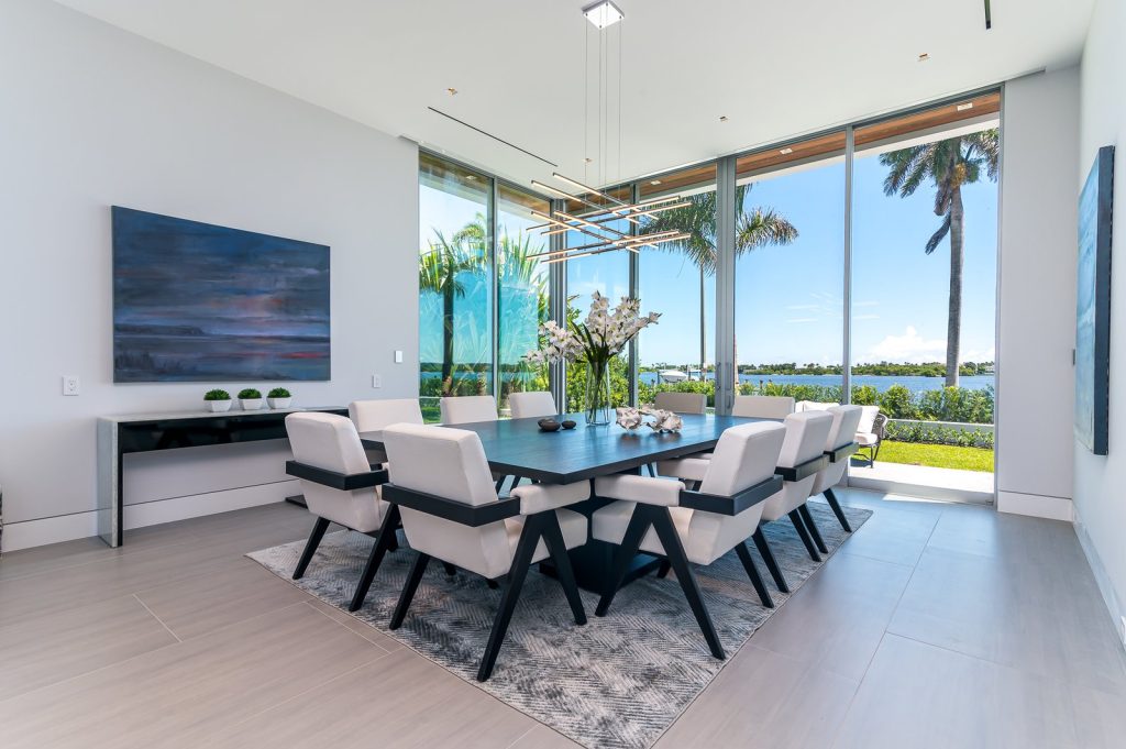 Designed in collaboration with renowned architect David Lawrence, the 15,000-square-foot, three-story residence commands a privileged position along the Intracoastal Waterway, offering shimmering water views and an ever-changing coastal backdrop. The architecture is both minimalist and monumental—defined by clean lines, expansive glass, and an effortless connection between indoor and outdoor living.