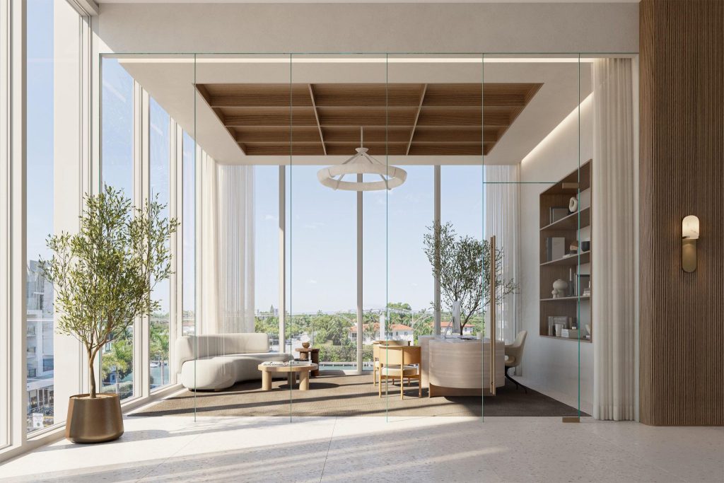 The wellness center is the highlight of the development and is designed to offer a holistic approach to wellness that combines Eastern and Western healing practices. The center features Miami’s first caldarium, The Bath House, which includes a hydrotherapy circuit, steam room, and sauna. Other wellness amenities include treatment rooms, meditation and yoga studios, and a fitness center.