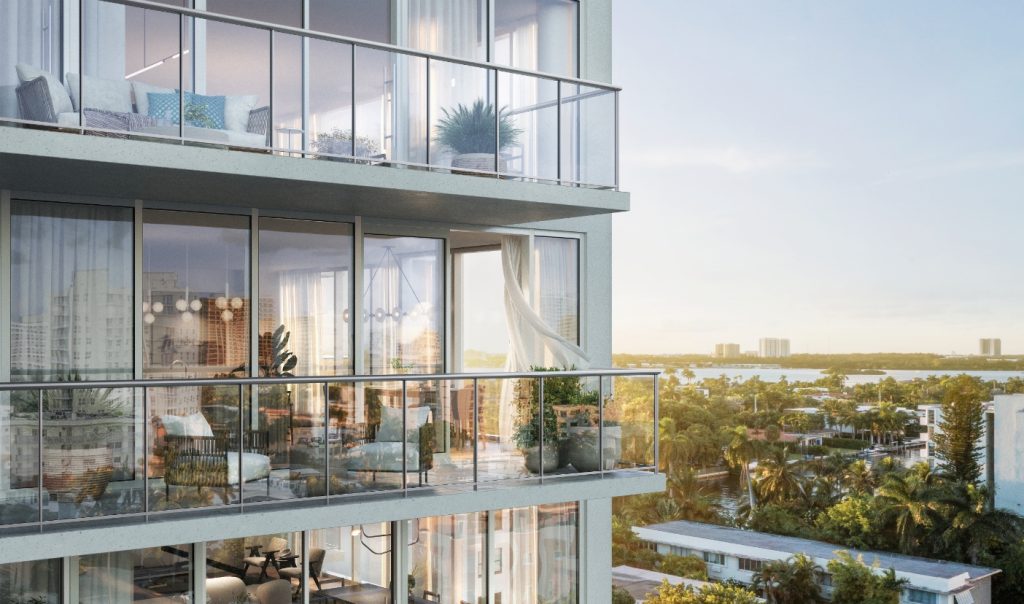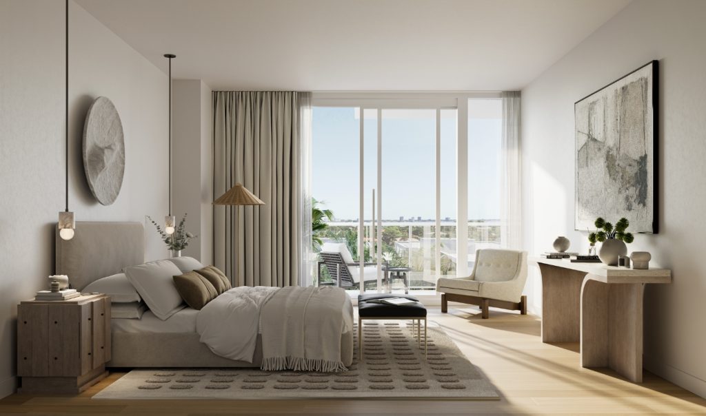 The residences range from one- to four-bedrooms and are priced from $1.3 million. The building incorporates biophilic design elements inspired by the water, sun, and sand. The residences feature spacious balconies with panoramic water views and high-end finishes and appliances.