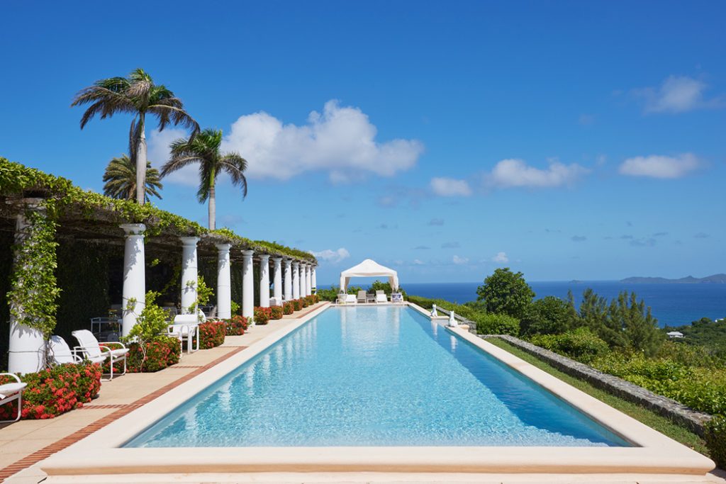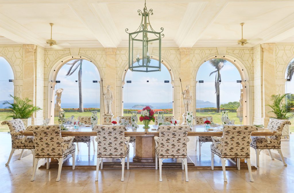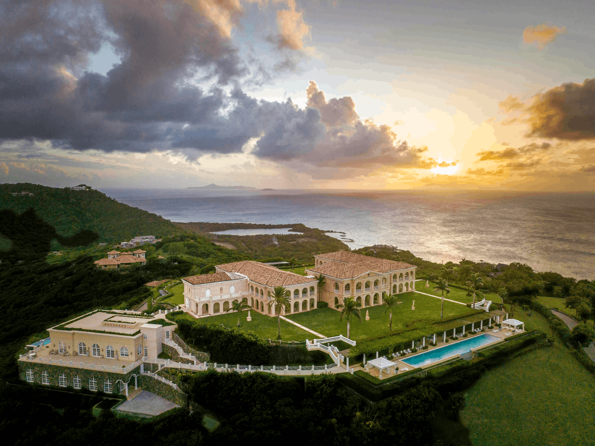 Spanning an impressive 17.5 acres atop Endeavour Hill, the estate commands sweeping, uninterrupted views across the Caribbean Sea and the scattered jewels of the Grenadines. Its design is a masterful homage to 16th-century European elegance, drawing inspiration from Palladian symmetry and Venetian opulence. The result is a residence that feels both timeless and transportive—an Italian palazzo reimagined in a tropical paradise.