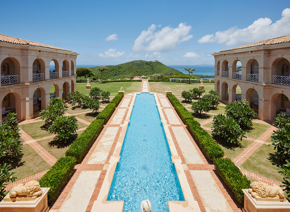 The Terraces’ iconic peach-hued façade is defined by perfect symmetry, anchored by a striking, temple-like centerpiece and enveloped by expansive terraces and shaded loggias on every side. These outdoor spaces invite a seamless connection between architecture and nature, offering countless vantage points from which to absorb the island’s breathtaking beauty.