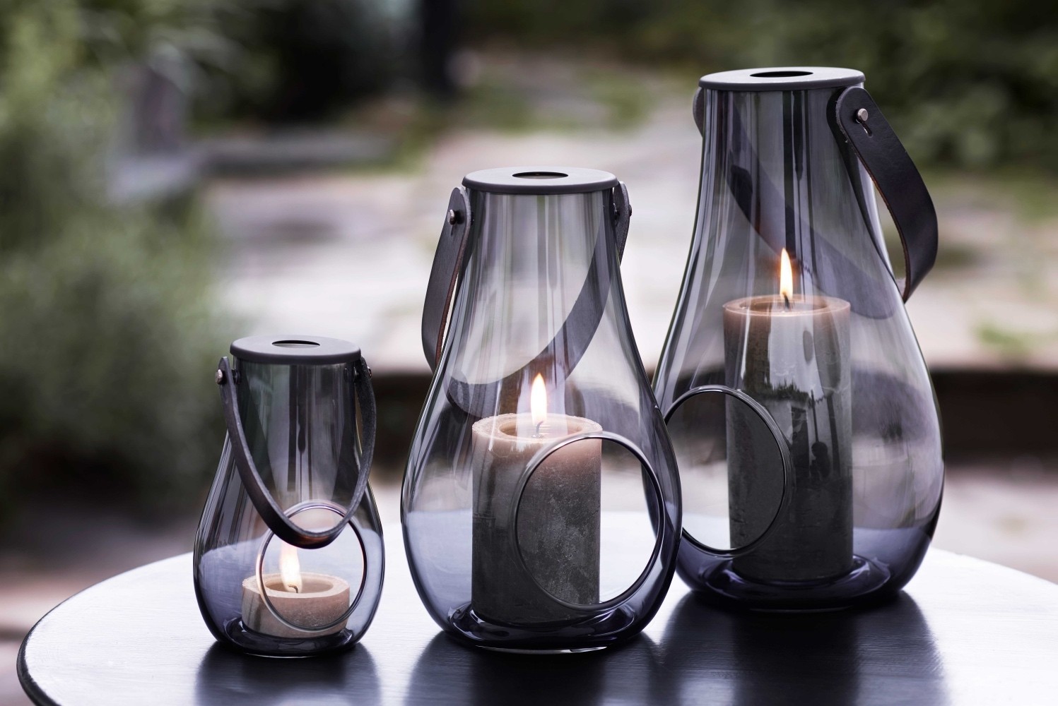 The lantern is available in three understated and elegant colors: smoke, olive green, and clear; these colors all produce a warm glow when lit. In addition to that, it is available in a range of sizes.