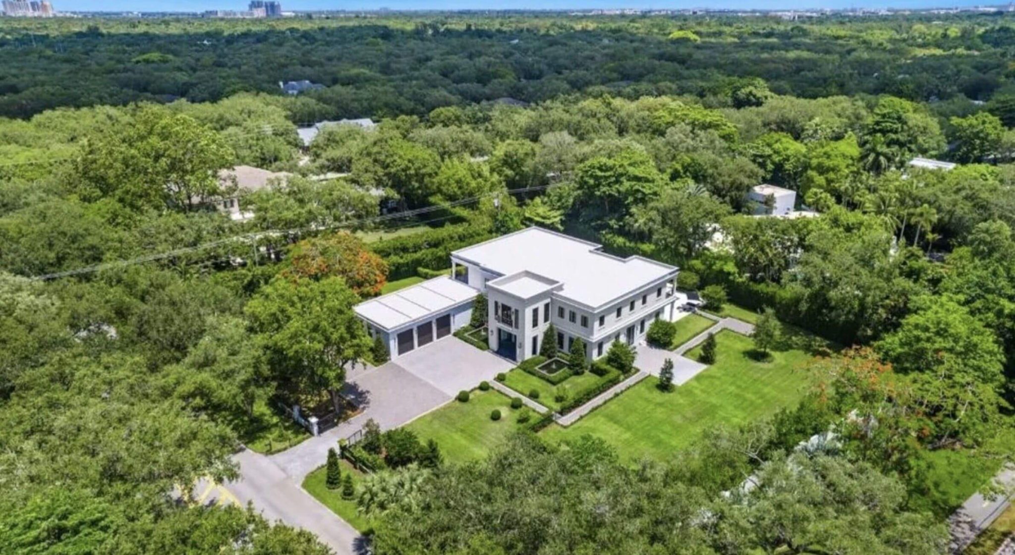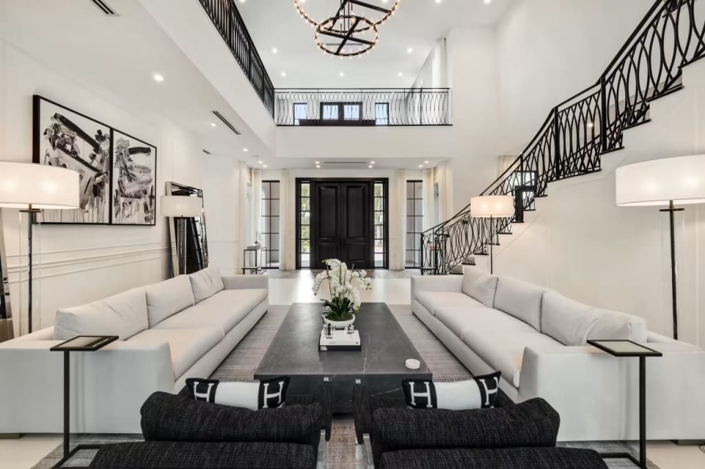 The residence encompasses a total area of 11,476 square feet, which includes terraces, outdoor spaces, and lower levels. As per the listing, the property is equipped with a sturdy bunker featuring a poured-concrete roof and windows that are resistant to hurricanes.
