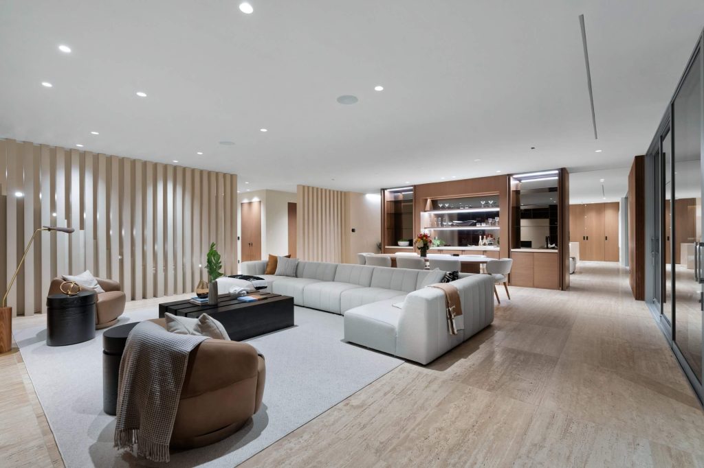 The architecture is characterized by the use of high-quality materials such as walnut, ipe wood, and imported Travertine stone. These elements ensure that the villa is not only visually stunning but also well-integrated with its natural surroundings. The incorporation of organic materials like clay further enhances the property’s serene living experience.